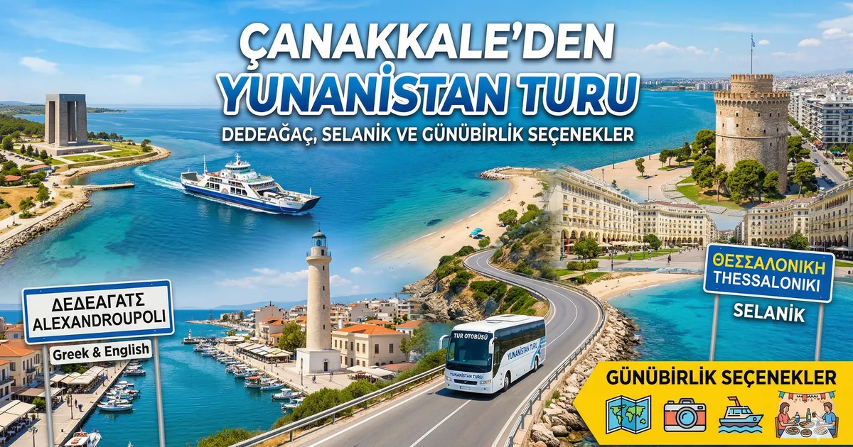 Çanakkale'den Yunanistan'a günübirlik veya konaklamalı tur seçenekleri: Dedeağaç alışveriş turu, Selanik gezi rehberi, Kavala rotası, pasaport ve vize bilgileri.